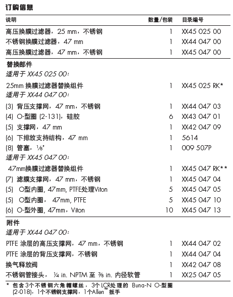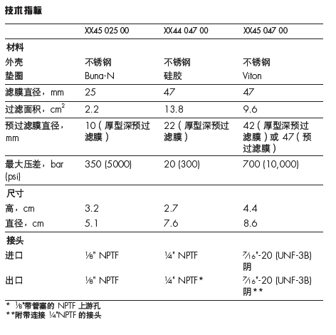 适合在进口压力为 20 至 700 bar 时对气体或液体进行过滤 差别压力取决于使用的滤膜类型。 所有换膜过滤器都可高温高压灭菌