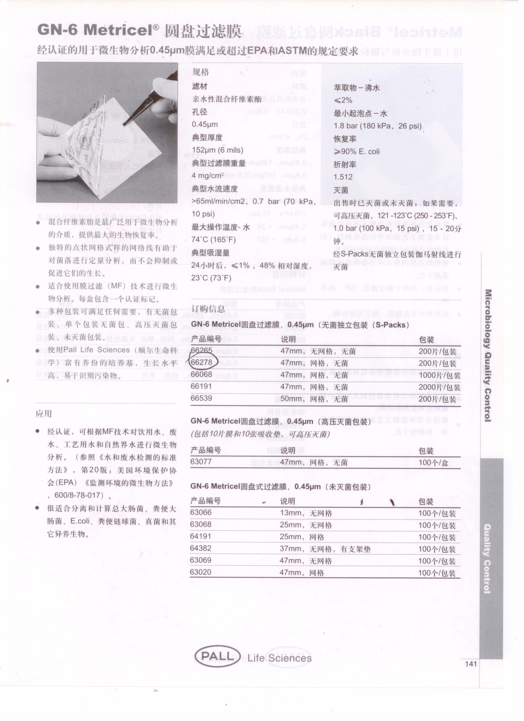66191 无菌过滤膜参数如下